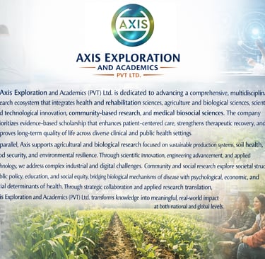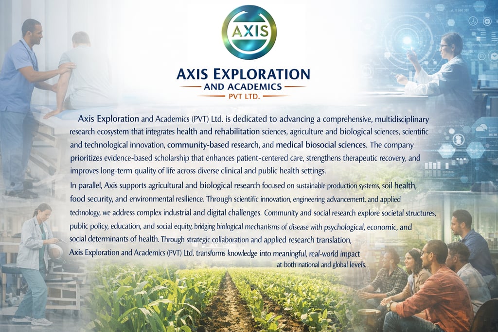 Axis Exploration and Academics (PVT) Ltd. leads a multidisciplinary research initiative spanning health and rehabilitation, agricultural and biological sciences, scientific innovation, community research, and medical biosocial studies. By aligning rigorous academic standards with practical implementation, the company ensures that research outcomes support patient-centered care, sustainable development, technological advancement, and socially informed health solutions—delivering knowledge that creates measurable impact across scientific, clinical, and community domains.